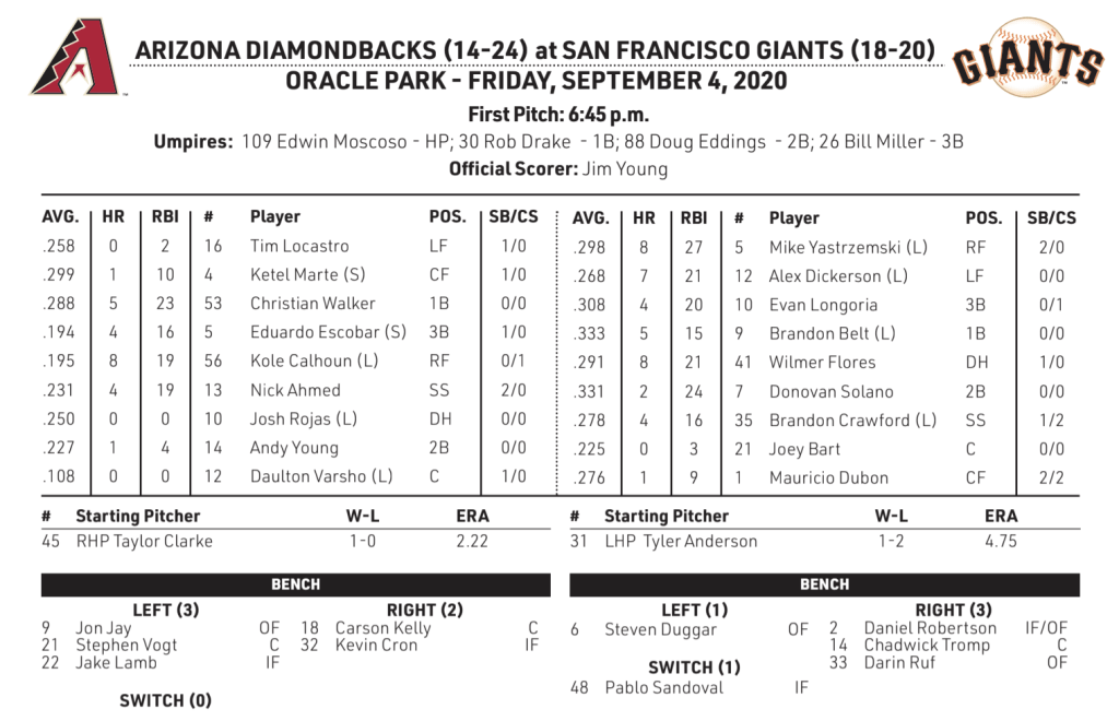 Score: Diamondbacks 6, Giants 3
