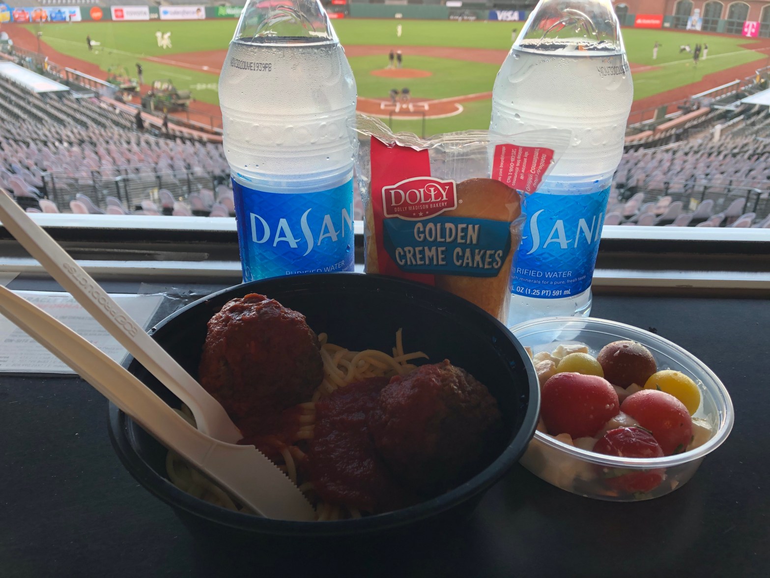 I didn’t have a big lunch so I was very excited to see what the kitchen staff had cookin’ for tonight. I was pleasantly surprised by seeing Spaghetti and Meatballs on the menu.