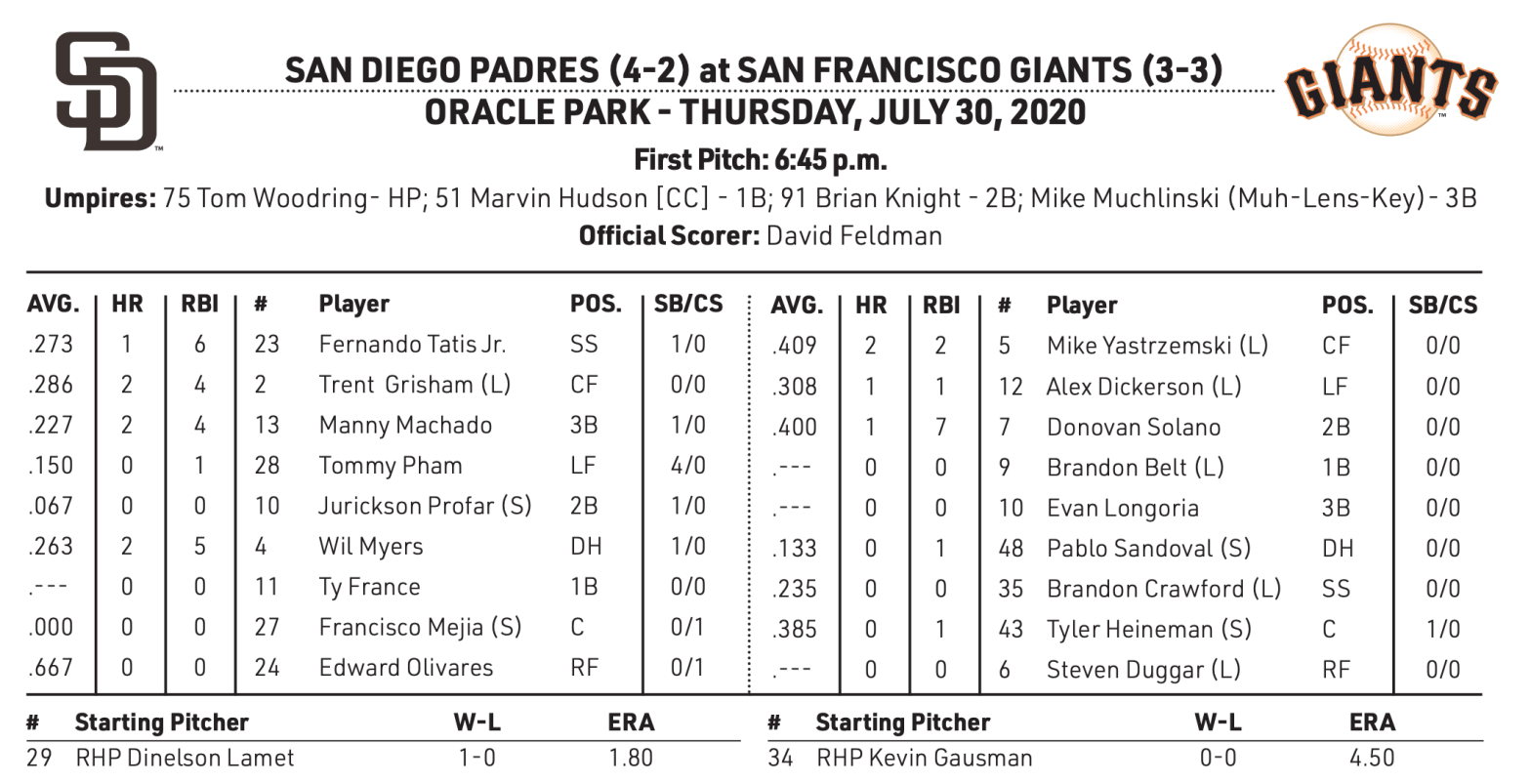 San Diego Padres @ SF Giants (7/30)